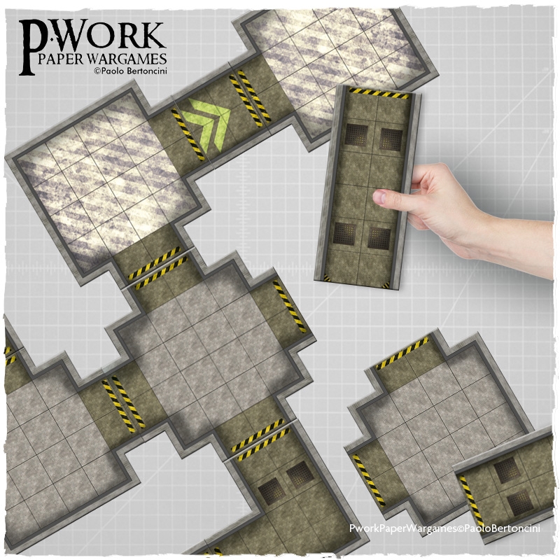 This Add-On from Pwork Wargames’ Spacetiles series contains 27 unique assets depicting modular room and corridor sections (e.g., straight pieces, turns, intersections, dead ends, etc.), doors, and decorative items (e.g. floor grates, caution stripes, etc.) to further customize your map layouts. The content depicts the interior of a space station or base, and is intended for sci-fi genre games.
