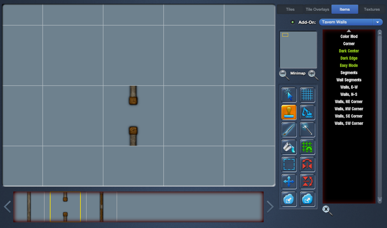 Dev Notes: For this MapForge Add-On, I excluded a couple of styles in the original set (they looked too similar, in my opinion) and instead replaced them with two new (lighter-colored) styles that I created via color mods. I also added half-length wall segments, which should prove useful.