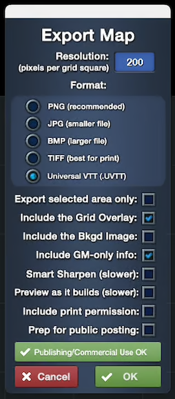 Flexible export options, both for printing your maps and for using them in a virtual tabletop app.